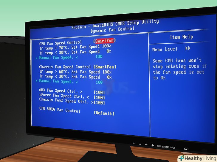 Проконтролюйте роботу вентиляторів. якщо ваші вентилятори підключені до материнської плати, ви можете проконтролювати їх роботу, увійшовши в BIOS. У BIOS ви також можете змінити швидкість обертання вентилятора. Використовуйте програму, наприклад, SpeedFan, для контролю за швидкістю обертання вентилятора в Windows.- Якщо вентилятори підключені до блоку живлення, ви не зможете контролювати швидкість їх обертання (вони будуть працювати на максимальній швидкості).