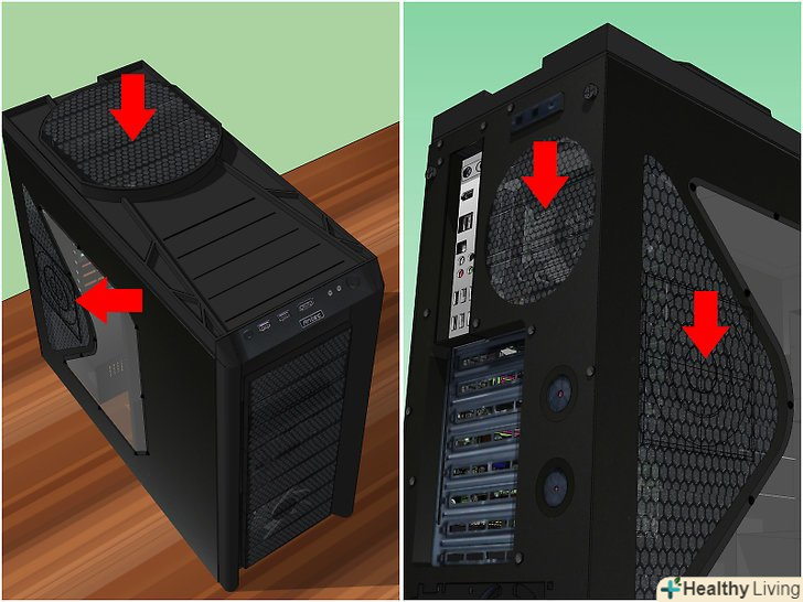 Знайдіть вентиляційні отвори.у будь-якому корпусі таких отворів може бути кілька. Вони можуть бути розташовані на задній, передній, бічній і верхній панелі корпусу.