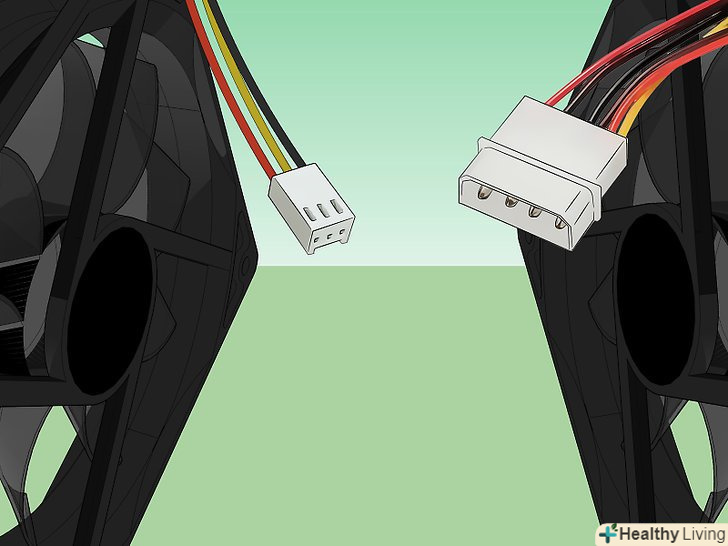 Переконайтеся, що вибрані вами вентилятори відповідають роз'ємам живлення в корпусі комп'ютера.для цього відкрийте корпус і перевірте кабелі, що живлять вентилятори. Найбільш поширеним роз'ємом живлення є Molex (3-контактний і 4-контактний). На деяких вентиляторах встановлюють кілька роз'ємів живлення, але все-таки упевніться в їх сумісності з роз'ємами у вашому корпусі. Якщо ви хочете контролювати швидкість обертання вентилятора, підключіть його до материнської плати (до 3-контактного або 4-контактного роз'єму).