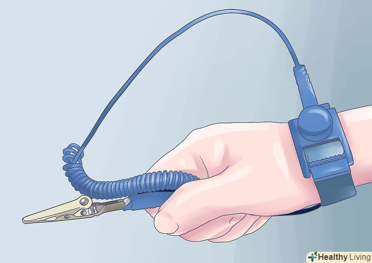 - Обов'язково заземлите себе перед тим, як почати роботу з комп'ютером. Ви повинні розрядити будь електростатичний заряд, який може перебувати на вас, перед тим як приступити до роботи з електричними компонентами. Щоб це зробити, переконайтеся, що ви не працюєте на поверхні, яка може створити статичний заряд (вовняний килим і т.д.), і перед тим як доторкнутися до будь-якого компонента всередині корпусу, доторкніться до металевої поверхні. Для цього підійде і сам корпус.