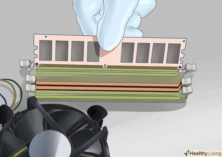 Встановіть комплектуючі.перш ніж вставити в корпус панель з ново-встановленою материнською платою вам необхідно встановити процесор, процесорний кулер і оперативну пам'ять. Зробивши це зараз, ви зможете легше до всього дістати потім. Якщо ваша материнська плата не встановлена в панель, встановіть комплектуючі після приєднання проводів.