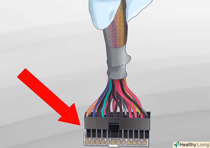 Підключіть електроживлення.після того як закріпіть материнську плату можете почати підключати до неї різні комплектуючі. Рекомендується спершу підключити електроживлення, так як, в іншому випадку, вам буде важче дістатися до всіх роз'ємів. Переконайтеся, що підключили як 20/24-пін, так і 4/8-пін 12V перехідники.- Якщо ви не впевнені в тому, який кабель куди підключати, звіртеся з інструкцією по подачі живлення.