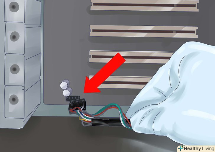 Підключіть передню панель.щоб комп'ютер можна було включати кнопками попереду корпусу або бачити, коли система здійснює доступ до жорсткого диска, вам необхідно під'єднати перемикачі і індикатори передньої панелі. Знайдіть наступні дроти і підключіть їх до відповідних контактів на материнській платі:- Вимикач живлення