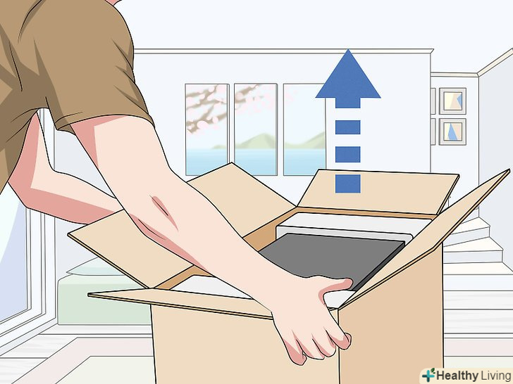 Витягніть комп'ютер з коробки.щоб встановити комп'ютер, спочатку витягніть його з коробки. Зробіть це у відповідному місці. Витягніть комп'ютер з коробки на невеликій висоті над твердими поверхнями, щоб мінімізувати збиток, якщо комп'ютер впаде.[11]- Позбавтеся від будь-якої пластикової упаковки. Наприклад, більшість моніторів закривається пластиковою плівкою, яку потрібно зняти перед використанням комп'ютера.[12]