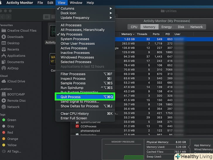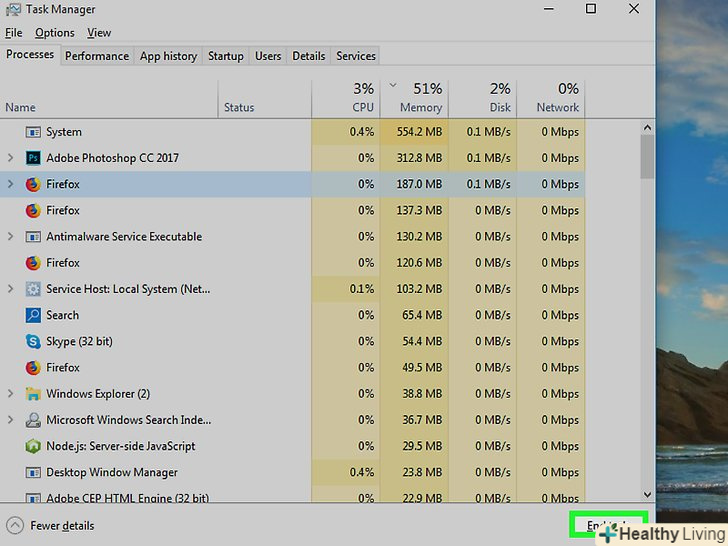 Закрийте програми, які займають великий обсяг пам'яті.для цього виберіть програму, натисніть "Завершити процес«, а потім натисніть» Закрити «або»закрити примусово".- Якщо програму закрити примусово, всі внесені зміни, які ви не встигли зберегти, будуть втрачені.
