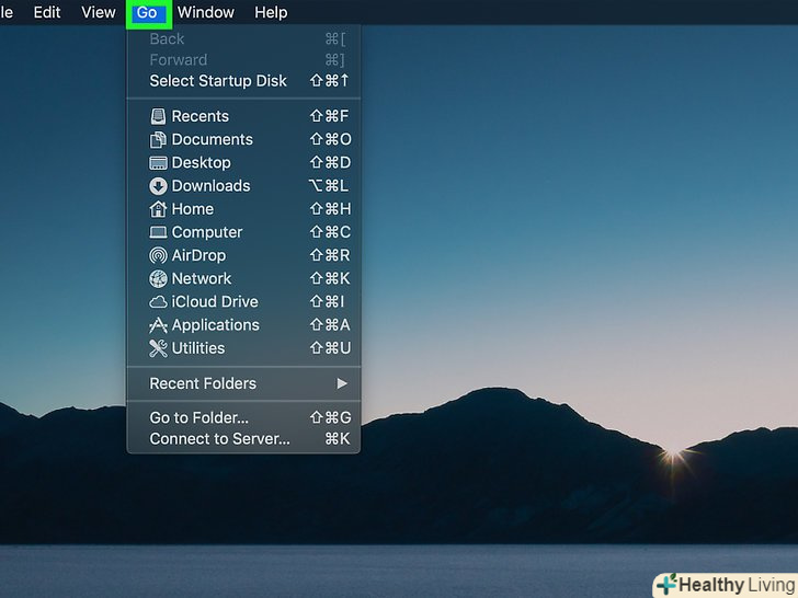 Відкрийте менюПерехід. воно знаходиться в рядку меню у верхній частині екрана.- Якщо ви не бачите цього меню, спочатку відкрийте вікно Finder або клацніть по робочому столу.