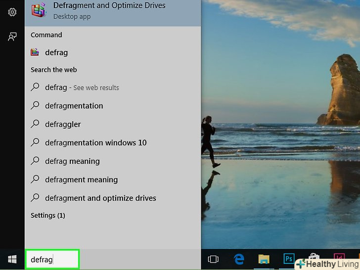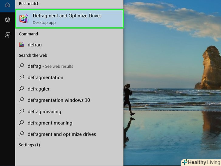 НатиснітьДефрагментація та оптимізація дисків. це опція у верхній частині меню "Пуск". Запуститься програма для дефрагментації диска.- Дефрагментація жорсткого диска — це процес, при якому фрагменти файлів, розкидані по всьому диску, впорядковуються в певну логічну структуру, що дозволяє швидше шукати і відкривати файли і програми.