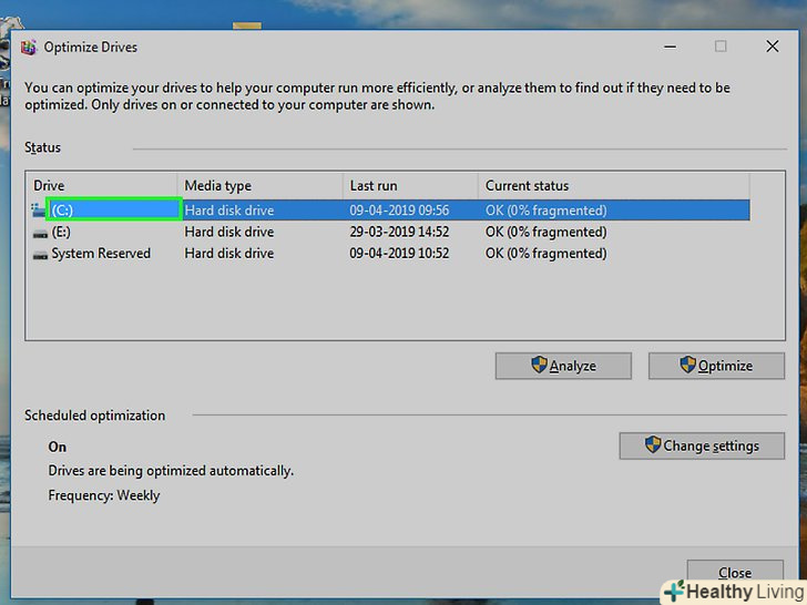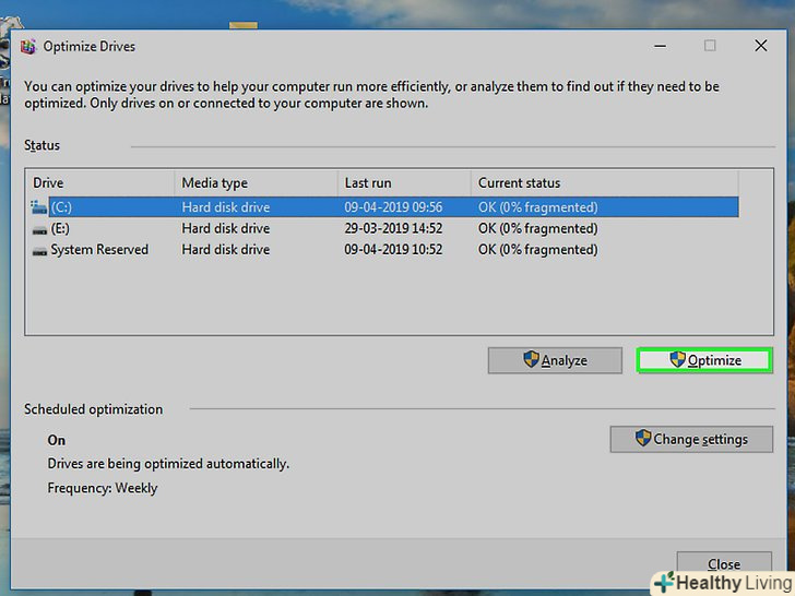 НатиснітьОптимізація. це опція в правій нижній частині вікна. Почнеться дефрагментація жорсткого диска.