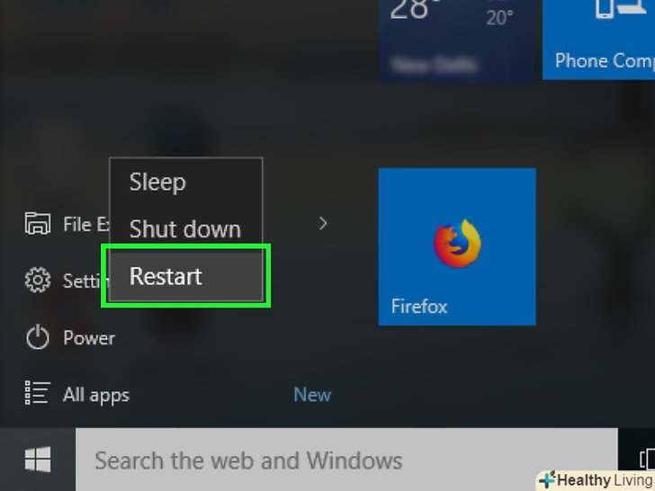 Перезавантажте комп'ютер.зробіть це, якщо комп'ютер працює добу безперервно. Перезавантаження допоможе збільшити швидкість роботи системи.- Windows — відкрийте меню «Пуск» і натисніть «Вимикання»