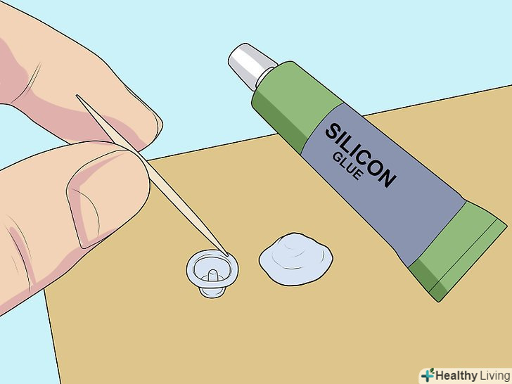 Приклейте нову гумку.перш ніж почати, ви повинні зрозуміти, що це досить ризикований крок, і якщо ви нанесете занадто багато клею, це може зіпсувати клавішу. Для більшої надійності краще віднести клавіатуру в комп'ютерну майстерню і замінити її всю. Якщо ви вирішите полагодити все самі, зробіть наступне:- дуже обережно видаліть гумку з клавіші, якою ви не користуєтеся, піднявши її гострим ножем.[3] Так можна дуже легко пошкодити гумку, але це практично єдине джерело змінних гумок.