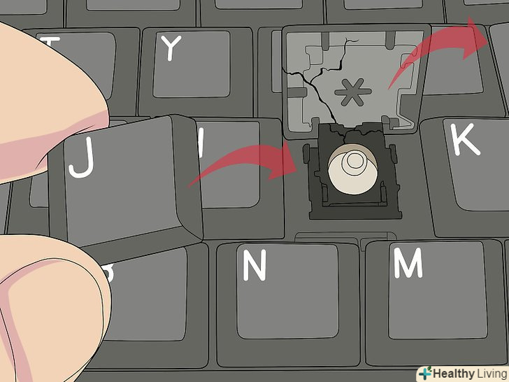 Огляньте клавішу на наявність інших проблем.клавіші практично завжди випадають через пошкодження клавішного ковпачка або металевої скоби, якщо мова йде про великих клавішах. Якщо ви впевнені в тому, що клавіша знаходиться в хорошому стані, прочитайте розділ про застряглі клавіші.