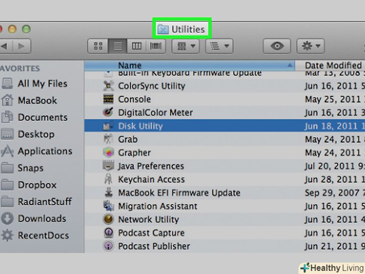 Запустіть дискову утиліту.двічі клацніть по «Дискова утиліта» — це значок у вигляді сірого жорсткого диска зі стетоскопом.