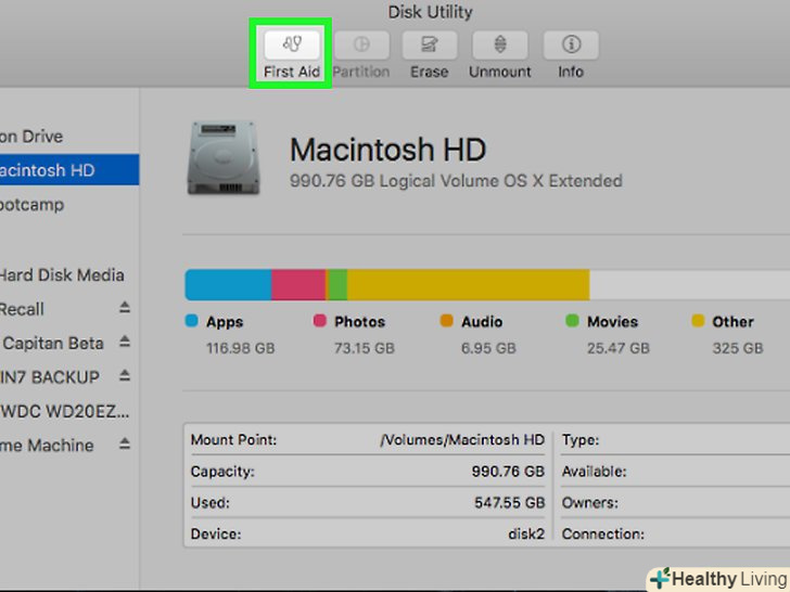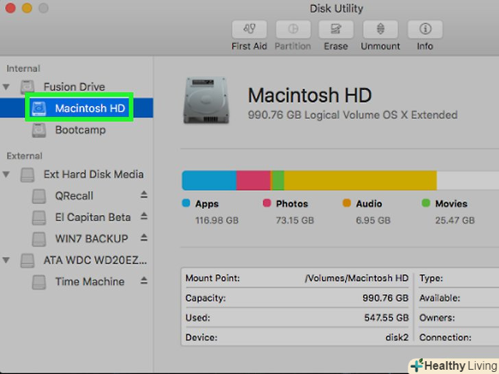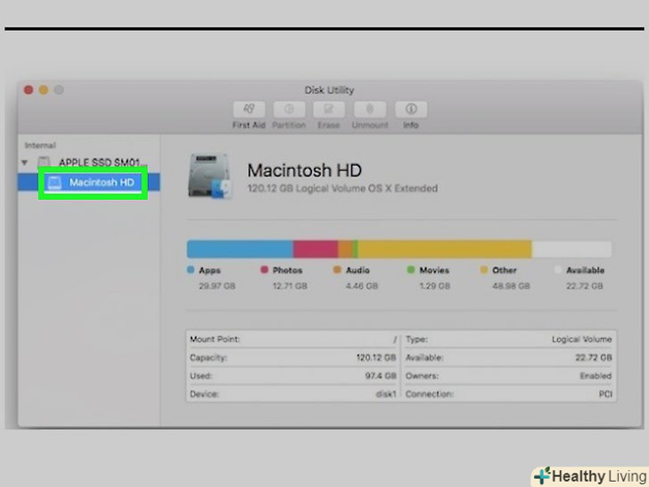 Виберіть жорсткий диск.натисніть на його ім'я (наприклад, "Macintosh HD") на бічній панелі.