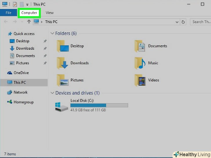 НатиснітьКомп'ютер. це вкладка у верхньому лівому куті вікна. Відкриється панель інструментів.