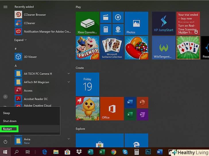 Перезавантажте комп'ютер. Натисніть «Пуск», клацніть по» живлення"