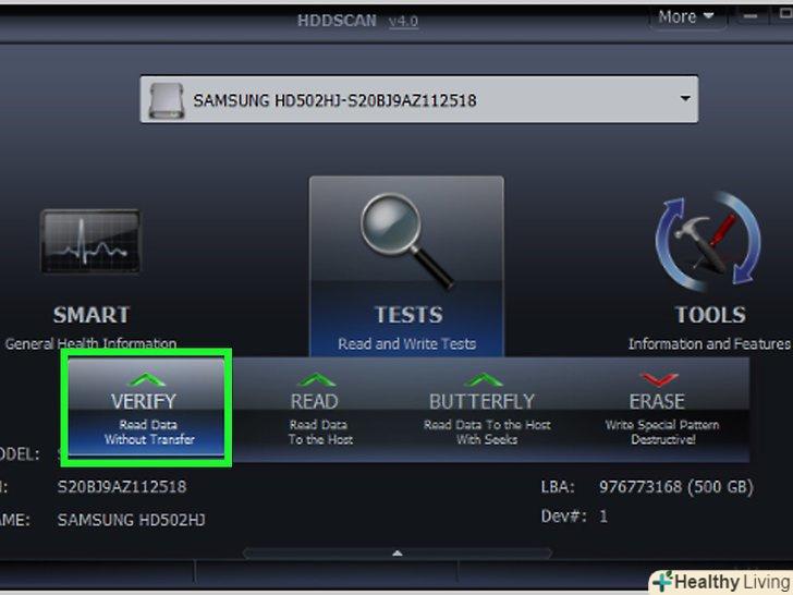 Клацніть по спрямованій вправо стрілці. вона знаходиться в правій частині вікна. HDDScan приступить до сканування обраного диска на наявність помилок.