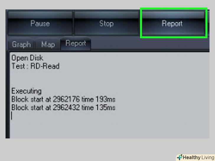 Перегляньте результат сканування.як тільки сканування завершиться, виберіть його в нижній частині вікна, а потім натисніть " Report "(звіт), щоб побачити кількість помилок. Чим більше помилок, тим більше пошкоджений жорсткий диск.- Тест "READ" зчитує дані з жорсткого диска, щоб виявити пошкоджені сектора жорсткого диска.