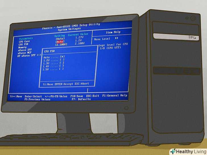 Увімкніть комп'ютер і увійдіть в BIOS.якщо комп'ютер "розігнаний", встановіть параметри FSB і vCore на вихідні значення.- Коли ви закінчите, натисніть " Exit and save changes "(вийти і зберегти зміни).