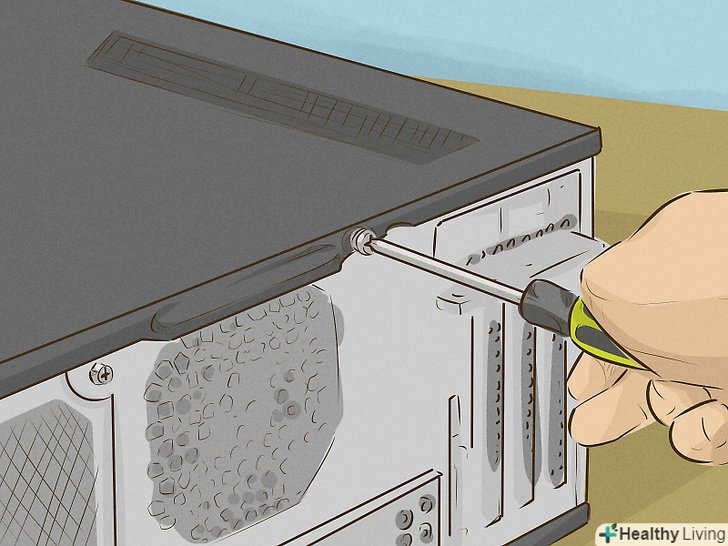 Відкрийте корпус комп'ютера.для цього відкрутіть гвинти, які розташовані на кромці задньої панелі корпусу.- Доторкніться до металевої частини корпусу, перш ніж працювати з комплектуючими комп'ютера. Так ви позбудетеся від електростатичної електрики, яке може пошкодити комп'ютер.