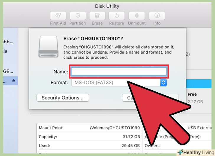 Дайте ім'я вашому накопичувачу USB.введіть ім'я накопичувача в поле "Ім'я". Введене ім'я буде відображатися в момент підключення пристрою до комп'ютера або іншого пристрою.