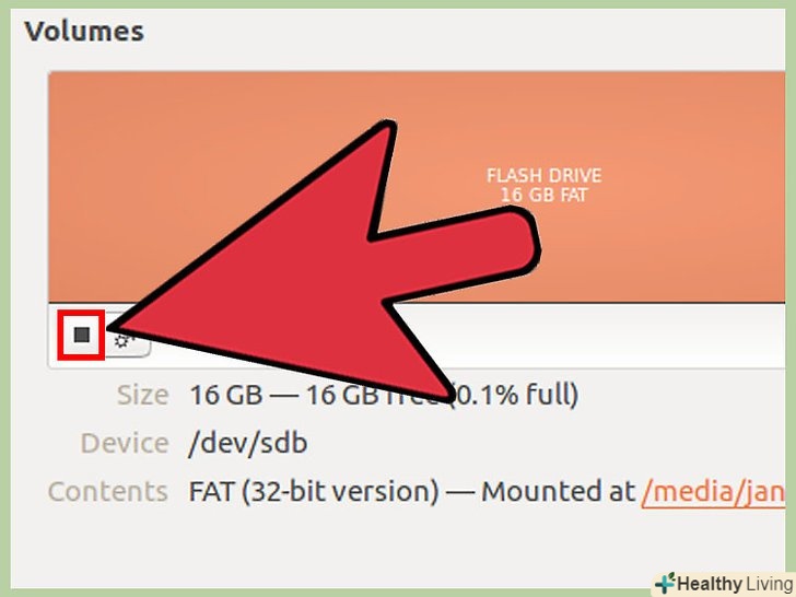 Натисніть по кнопці "Стоп" (■).Так пристрій розмонтується і стане доступним для форматування.