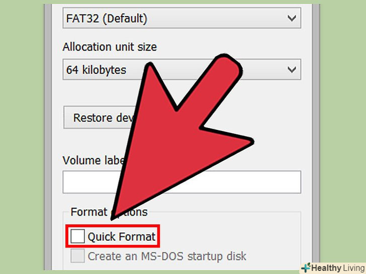 Зніміть галочку з пункту " Швидке форматування (очищення змісту)", Якщо USB-накопичувач працює некоректно.якщо ви помітили, що USB-накопичувач став повільніше працювати або виникають помилки при копіюванні файлів, то варто зробити повне форматування, що дозволить виявити і усунути проблеми. Цей процес займе більше часу, ніж звичайне швидке форматування.