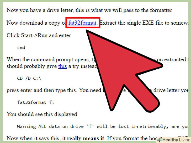 Скачайте програму fat32format.це безкоштовна утиліта, яка здатна відформатувати накопичувач будь-якого обсягу (аж до 2ТБ) в файлову систему FAT32. Її можна завантажити тут: ridgecrop.demon.co.uk/index.htm?guiformat.htm. на сторінці, що відкрилася натисніть на скріншоті програми для початку її завантаження.- Завантажена програма буде називатися "guiformat.exe"
