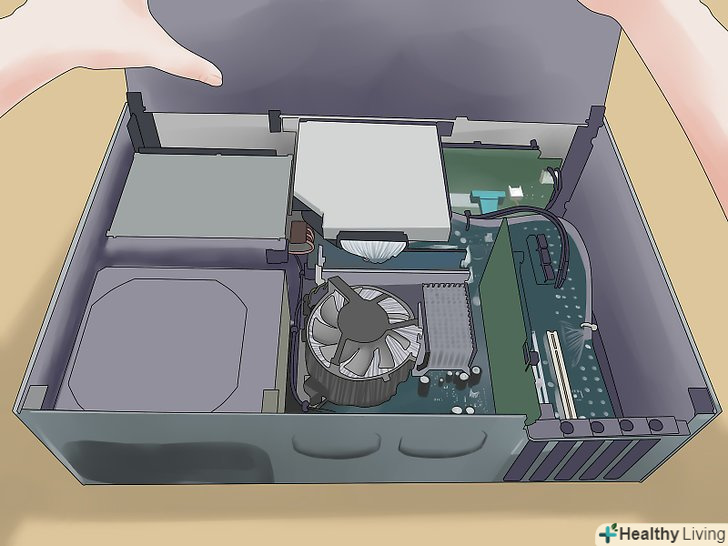 Відкрийте корпус.у більшості випадків панелі корпусу кріпляться гвинтами з накатаною головкою, але старі корпуси відкриваються хрестоподібною викруткою. Можливо, вам доведеться відкрутити викруткою гвинти з накатаною головкою, якщо вони туго прикручені. Гвинти розташовані по краях задньої поверхні корпусу.- Коли ви відкрутите гвинти, зніміть або відкрийте бічну панель.