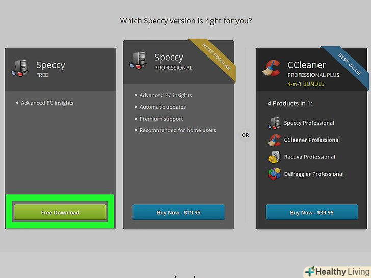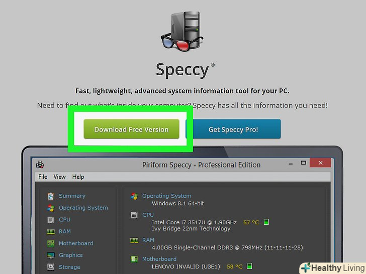 Відкрийте сайт Speccy. перейдіть на сторінку https://www.piriform.com/speccy у веб-браузері.
