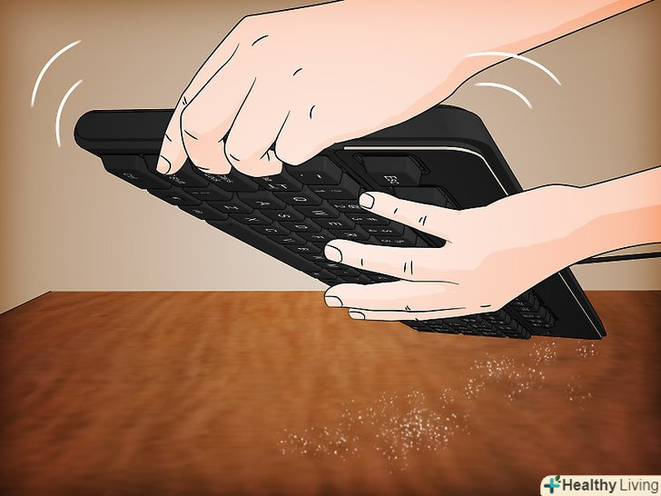 Переверніть клавіатуру (так, щоб клавіші "дивилися" на землю).потрясіть клавіатуру, потім проведіть по клавішах пальцями і знову потрясіть клавіатуру. Так ви позбудетеся від сміття, що скупчився між клавішами.