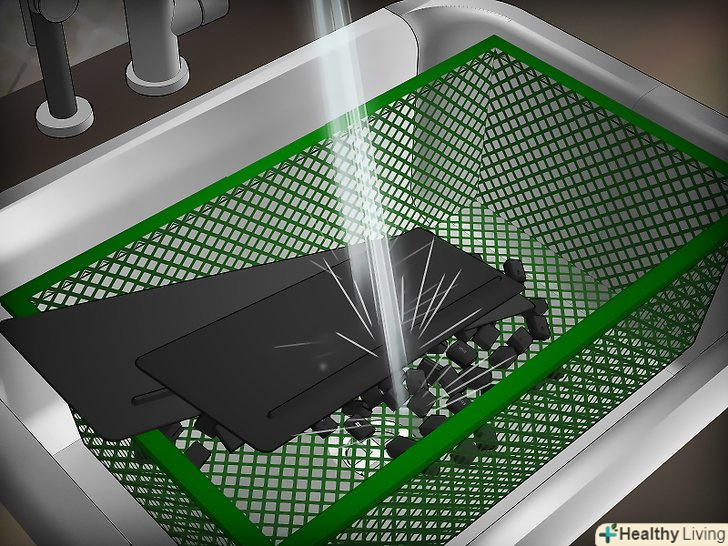 Помийте пластикові компоненти клавіатури (вручну або в машині).- Більшість клавіатур має контактну гумову прошарок. Її можна почистити водою і милом.