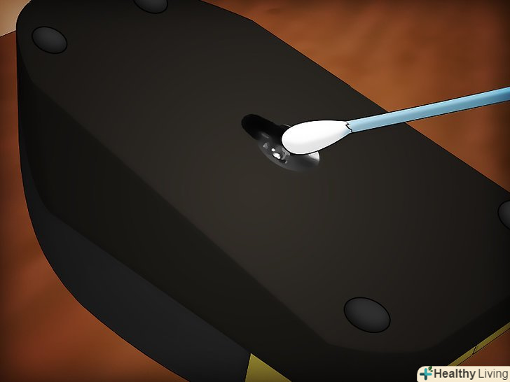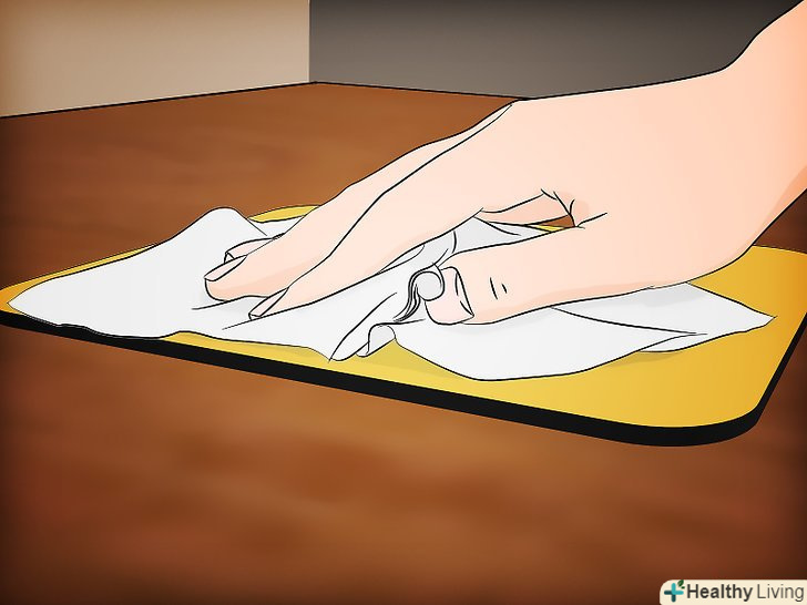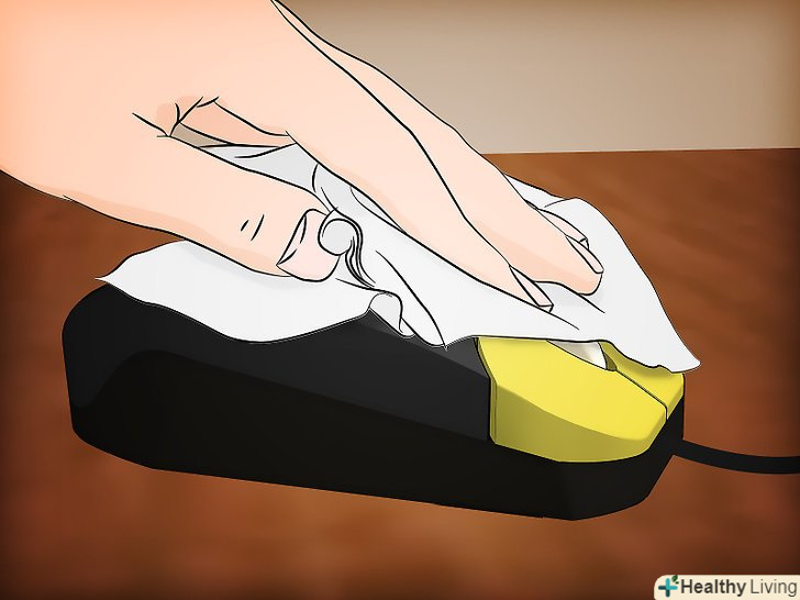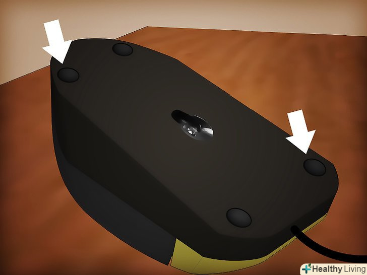 Очистіть ніжки миші.більшість моделей мають невеликі гумові ніжки вздовж нижньої поверхні миші. Вони допомагають ковзанню миші по поверхні столу (по килимку). Використовуйте тканину, змочену в спирті, щоб видалити пил і сміття, налиплий на ніжки. Також протріть всю нижню поверхню миші.[3]