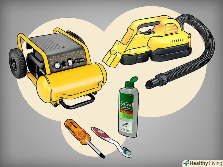 Візьміть необхідні інструменти та матеріали.вам знадобиться хрестова викрутка, стиснене повітря, пилосос, зубна щітка і технічний спирт.- Не користуйтеся пилососом з металевими трубками.