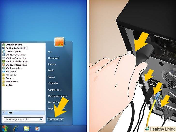 Вимкніть комп'ютер і від'єднайте всі кабелі (живлення, VGA, USB, Ethernet і т.д.).