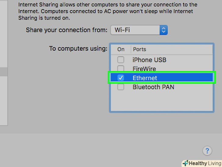 Встановіть прапорець біля "Ethernet".тепер з цього комп'ютера буде лунати інтернет, яким можна користуватися на другому комп'ютері.