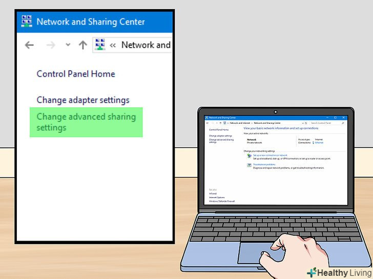 Клацніть поЗмінити додаткові параметри загального доступу. це посилання знаходиться у верхньому лівому куті вікна.