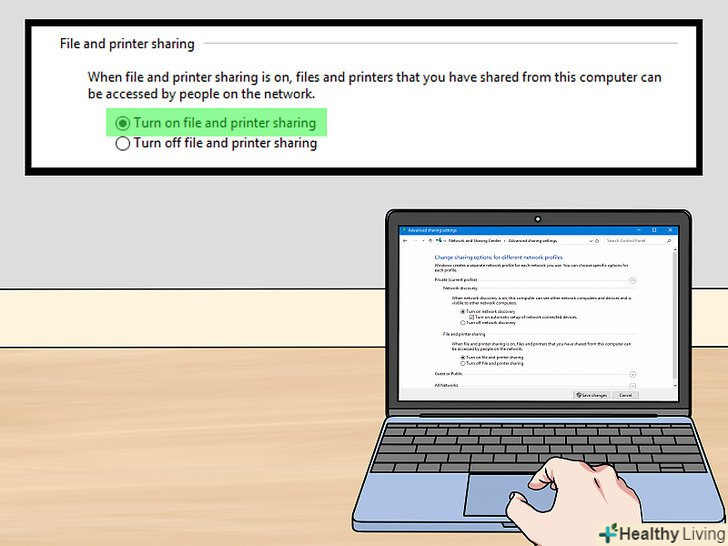 Увімкніть спільний доступ до файлів. установіть прапорець біля " увімкнути спільний доступ до файлів і принтерів "у розділі «спільний доступ до файлів і принтерів» посередині сторінки.
