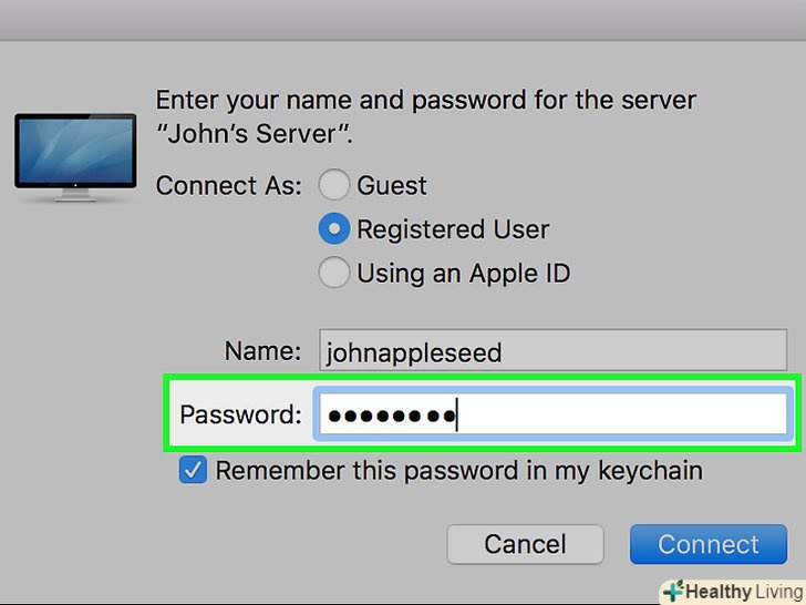 Введіть пароль до другого комп'ютера, коли з'явиться запит.так ви зможете підключитися до другого комп'ютера.- Якщо цього не сталося, спробуйте ввести пароль до першого комп'ютера.