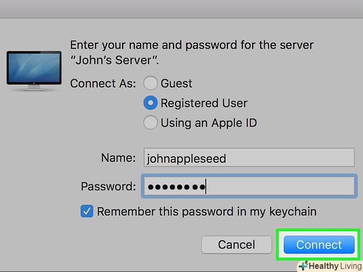 Двічі клацніть по імені другого комп'ютера Mac. Ви знайдете його у спливаючому вікні.