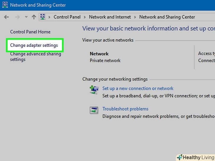 НатиснітьЗміна параметрів адаптера.ви знайдете цю опцію у верхній лівій частині вікна.