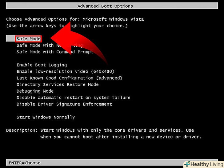 Перед наступним кроком завантажитеся в безпечному режимі.для цього при включенні комп'ютера кілька разів натисніть клавішу F8 і в відобразилося меню виберіть «Безпечний режим».