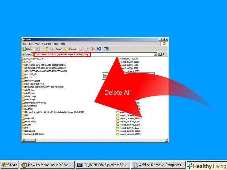Потім перейдіть до C:\Documents and Settings \ Ім'я Користувача \ Local Settings \ Temp. Видаліть всі файли в цій папці. Не видаляйте саму папку, але видаліть весь її вміст.