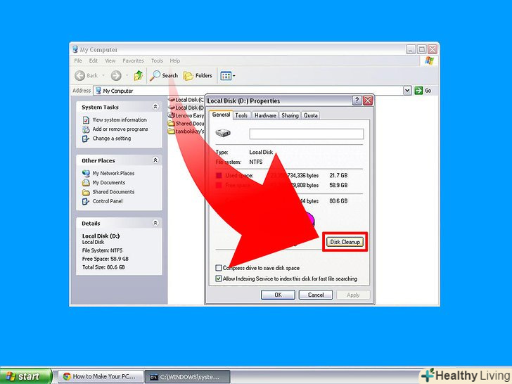 Запустіть утиліту "Очищення диска".для цього відкрийте вікно "Комп'ютер«, клацніть правою кнопкою миші по очищається локальному диску і в меню виберіть»Властивості". На вкладі «Загальні» натисніть "Очищення диска".