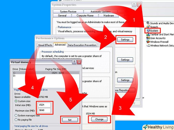 Збільште файл підкачки.для цього клацніть правою кнопкою миші по значку "Комп'ютер «і виберіть»Властивості". У вікні натисніть "Додаткові параметри системи". У розділі «Швидкодія» натисніть "Параметри". Перейдіть на вкладку "Додатково «і натисніть»Змінити". Збільште розмір файлу підкачки або відзначте «розмір за вибором системи». Потім натисніть "Встановити" і перезавантажте комп'ютер.
