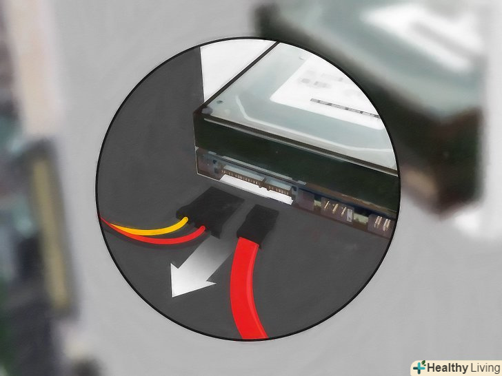 Від'єднайте кабелі, підключені до оптичного приводу.у переважній більшості випадків до оптичного приводу підключено два кабелі: кабель живлення і кабель передачі даних.- Кабель живлення має штекер білого кольору і чорні, жовті та червоні дроти.