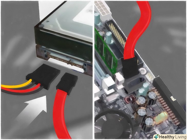 Підключіть жорсткий диск до материнської плати.для цього підключіть до жорсткого диска кабель живлення і кабель передачі даних.