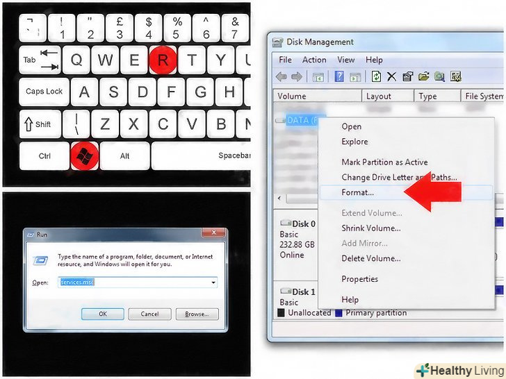 Форматуйте жорсткий диск.перед використанням жорсткого диска необхідно відформатувати його у файловій системі, яка сумісна з вашою операційною системою. Якщо ви плануєте встановлювати на жорсткий диск Windows, відформатуйте його в системі NTFS, а для простого зберігання даних підійде система xFAT або FAT32. Наступна процедура розрахована на користувачів Windows 10, але, швидше за все, застосовна і до інших версій цієї системи.- Натисніть Win + R, щоб відкрити вікно "Виконати".