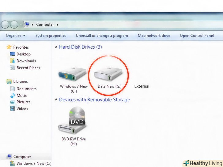 Переконайтеся, що система розпізнала зовнішній жорсткий диск.для цього відкрийте Провідник Windows (або вікно «Комп'ютер») і переконайтеся, що зовнішній жорсткий диск знаходиться в списку всіх підключених носіїв інформації. Тепер ви можете використовувати зовнішній жорсткий диск.