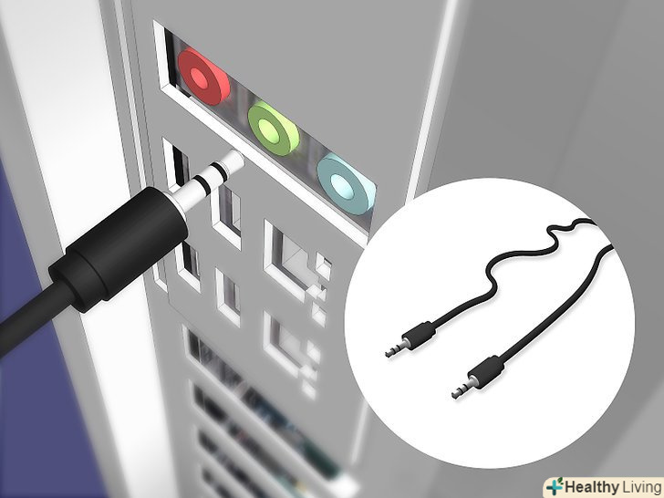 Знайдіть аудіовихід на задній панелі комп'ютера.зазвичай він забарвлений в зелений колір.
