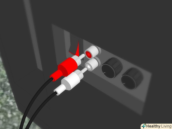 Підключіть інший кінець RCA кабелю до стереосистеми.Підключіть білий штекер до білого роз'єму, а червоний штекер до червоного роз'єму.